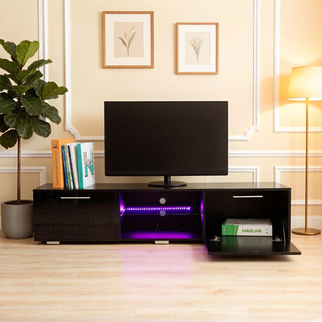148-280cm Adjustable TV Console with LED Light